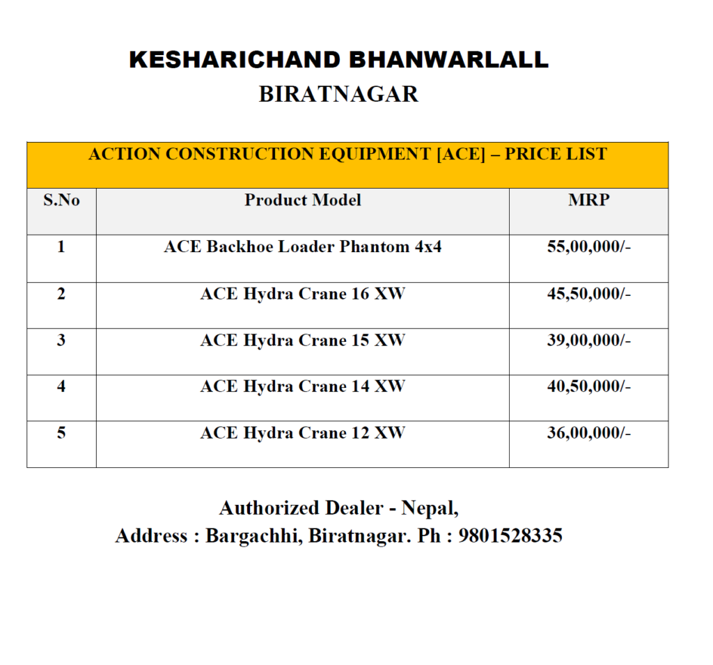 • ACE Construction Equipment Price List